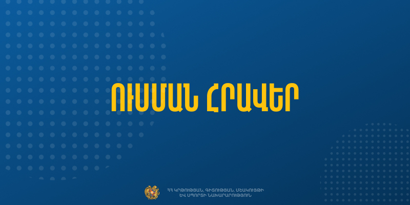 Նյութի աղբյուրը. ՀՀ կրթության, գիտության, մշակույթի և սպորտի նախարարություն