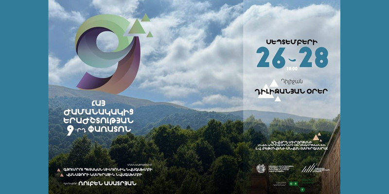 ԿԳՄՍ նախարարության աջակցությամբ և «Հայաստանի կոմպոզիտորների միության աջակցության» հիմնադրամի և Հայաստանի կոմպոզիտորների միության նախաձեռնությամբ՝ սեպտեմբերի 26-28-ը Դիլիջանի Էդվարդ Միրզոյանի անվան կոմպոզիտորների ստեղծագործական տան Լյուդվիգ վան Բեթհովենի անվան համերգասրահում կանցկացվի Հայ ժամանակակից երաժշտության 9-րդ փառատոնը՝ «Դիլիջանյան օրեր» խորագրով։ Միջոցառումների սկիզբը՝ ժամը 18:00: Մուտքն ազատ է:
