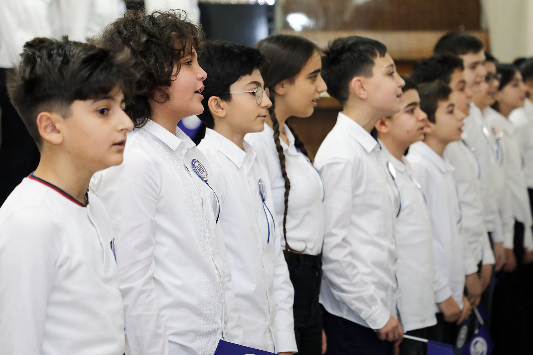 Հոբելյանական միջոցառումը մեկնարկել է Ֆիզմաթ դպրոցի օրհներգով, որը կատարել են դպրոցի սաները: