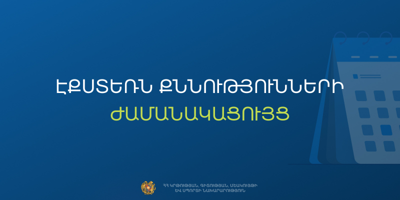 ԿԳՄՍ նախարարի հրամանով հաստատվել են 2026 թվականի 1-ին քննաշրջանի դրսեկության ձևով (էքստեռն) ավարտական քննությունների կազմակերպման ու անցկացման աշխատակարգը և ժամանակացույցը: