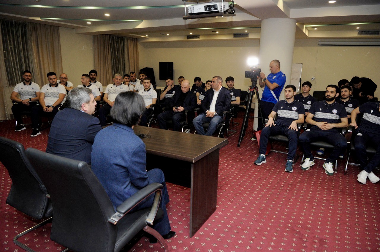 ՀՀ կրթության, գիտության, մշակույթի և սպորտի նախարար Ժաննա Անդրեասյանը ՀՖՖ նախագահ Արմեն Մելիքբեկյանի հետ այսօր հանդիպել է ֆուտզալի Հայաստանի ազգային հավաքականի խաղացողներին և մարզչական շտաբին: