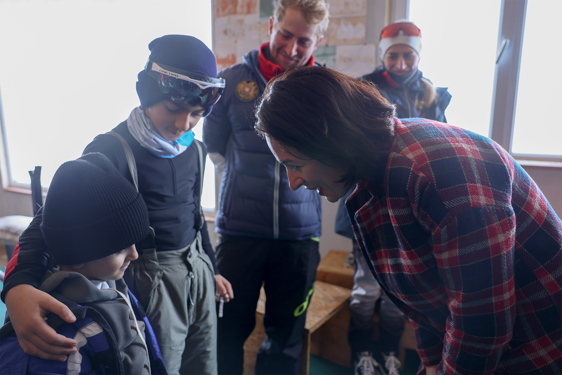 Ժաննա Անդրեասյանը մարզվող երեխաներից հետաքրքրվել է, թե որքան ժամանակ են զբաղվում դահուկավազքով, ինչպես են սովորում դպրոցում, ինչ այլ հետաքրքրություններ ունեն և այլն: