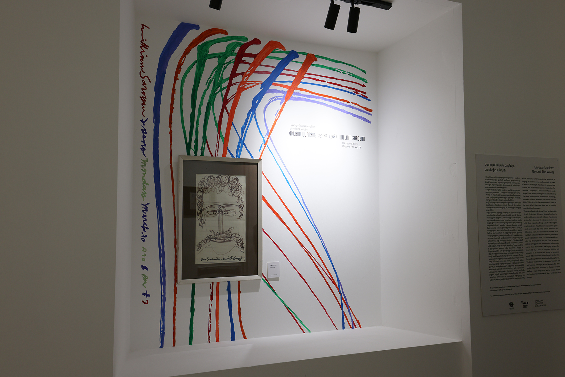 «Սարոյանական գույներ․ բառերից անդին» միջազգային ցուցադրությունը կազմակերպվել է Գրականության և արվեստի թանգարանի ու ԱՄՆ-ի «Վիլյամ Սարոյան» հիմնադրամի հետ համագործակցությամբ: Ցուցադրվել են Սարոյանի ավելի քան 100 նկարչական աշխատանքները, որոնք բերվել են ԱՄՆ-ից: Ցուցադրվել է նաև գրողի հեծանիվը, որը նա հայրենիքի ճանապարհներն անցնելուց հետո նվիրել է Գրականության և արվեստի թանգարանին։