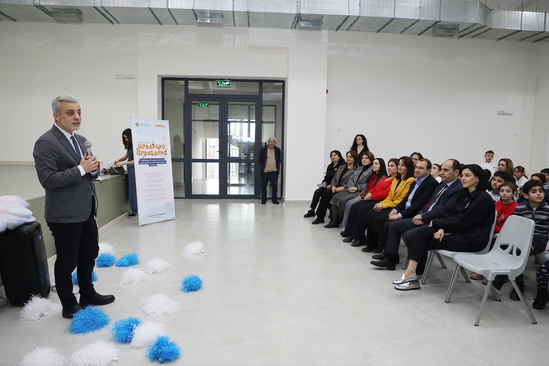 Այնուհետև դպրոցի դահլճում տեղի է ունեցել «Արևիկից Արևներին» մանկապատանեկան կրթամշակութային ծրագրի մեկնարկի միջոցառումը: Երեխաներին ներկայացվել են մանկագիր Շողեր Պետրոսյանի «Ամպիկը, որը չէր կարողանում անձրևել» գիրքը և դրա հիման վրա պատրաստված ինտերակտիվ ներկայացումը: Երեխաները մեծ ակտիվությամբ են մասնակցել միջոցառմանը, հետաքրքրությամբ դիտել ներկայացումը, պատասխանել ստեղծագործությանն առնչվող հարցերին և հարցեր ուղղել միջոցառման կազմակերպիչներին: