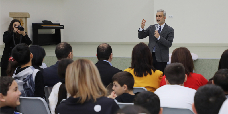 Նախարարի տեղակալ Դանիել Դանիելյանը զրուցել է դպրոցականների հետ, հետաքրքրվել ներկայացումից ստացած տպավորություններով, խոսել ընթերցանության կարևորության մասին, երեխաներին հորդորել անդադար կարդալ, սիրել գիրքն ու գրականությունը: