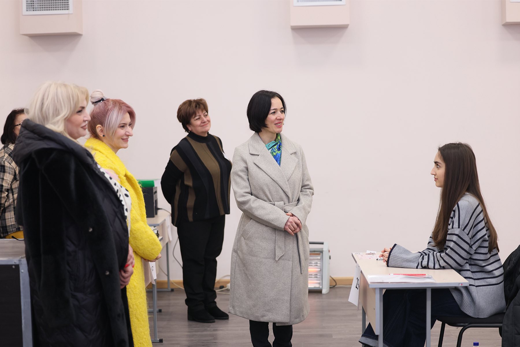 Перед началом экзаменационного процесса Жанна Андреасян вместе с заместителем министра Араксией Сваджян обошла экзаменационные аудитории и пообщалась с абитуриентами.