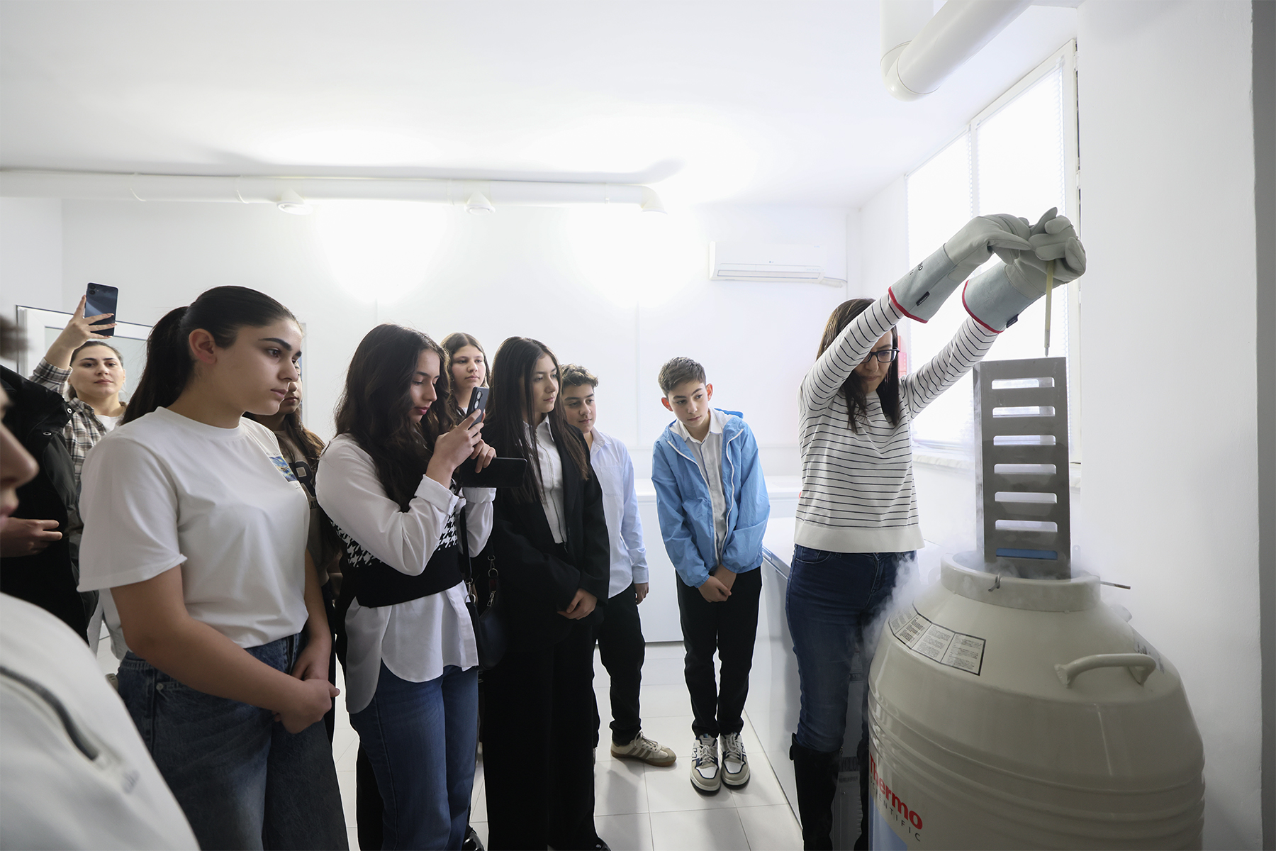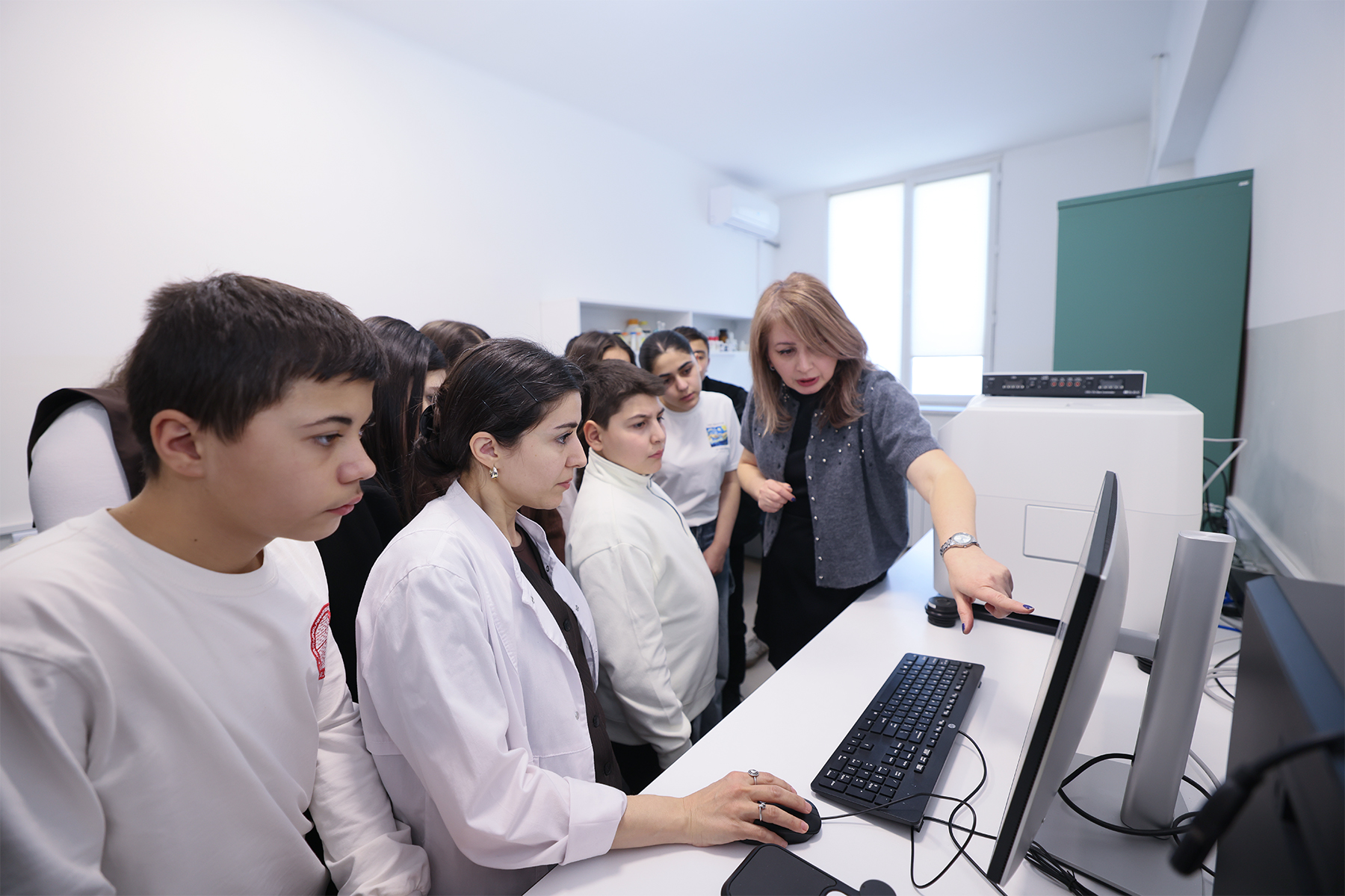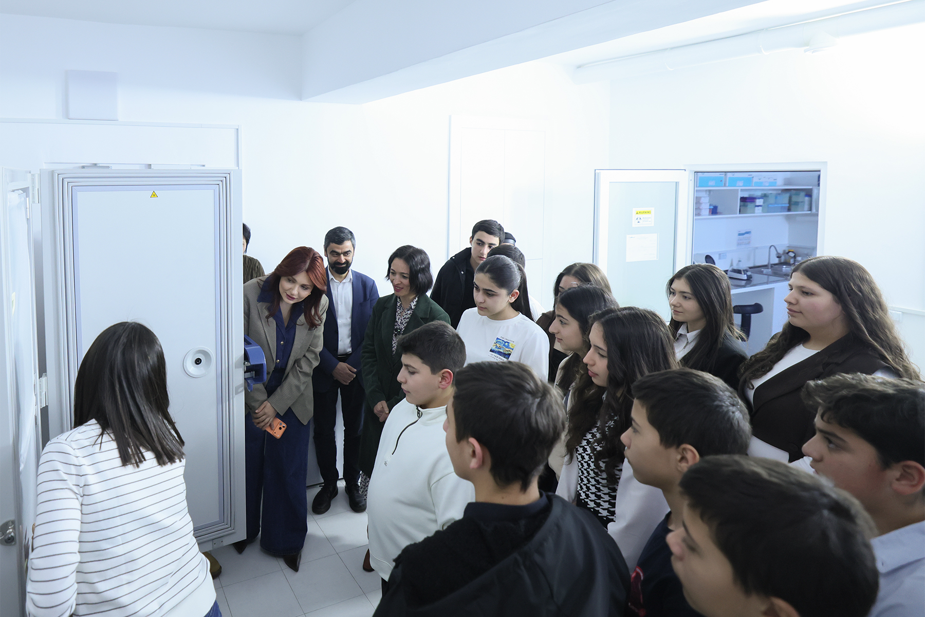 Министр образования, науки, культуры и спорта Жанна Андреасян сегодня вместе с группой школьников из Еревана и регионов Армении посетила Институт молекулярной биологии НАН РА.