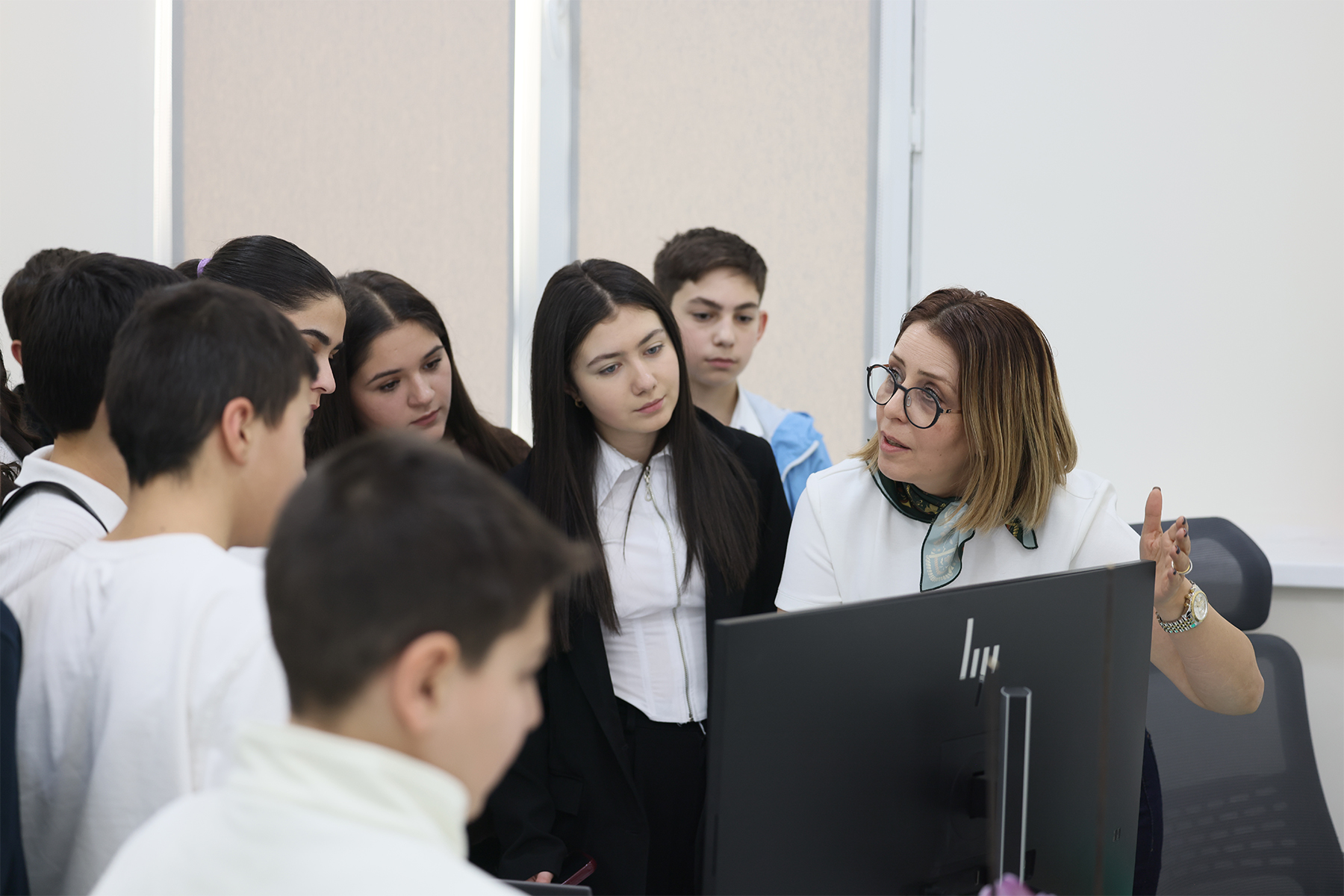 Жанна Андреасян пообщалась с учащимися, интересуясь их профессиональной ориентацией, планами на будущее и интересом к науке.